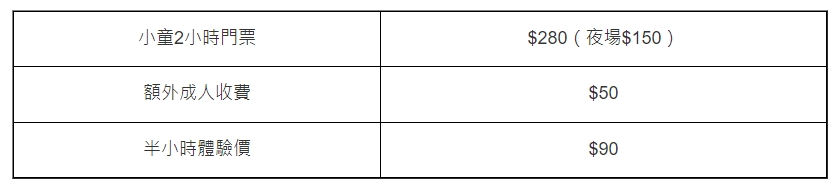 .星期五至日、公眾假期及7月11日 HK$280/組,平均每小時HK$35/位
