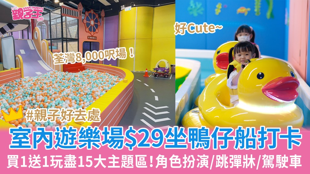 喜歡小黃鴨的小朋友要留意,到荃灣Childlike兒童樂園不單可以跟黃鴨影相見面,更可以坐鴨仔船!位于荃灣愉景新城的Childlike兒童樂園占地逾8,000呎,擁有多元化游樂設施,除了有基本的波波池、滑梯等設施,更有扮靚區、室內滑軌、小船漂流等,一系列超可愛超吸睛玩樂設備,小朋友必玩到不愿走!現在更有室內游樂場限時優惠,低至$29即可盡情玩,即看購買詳情及鏈接。