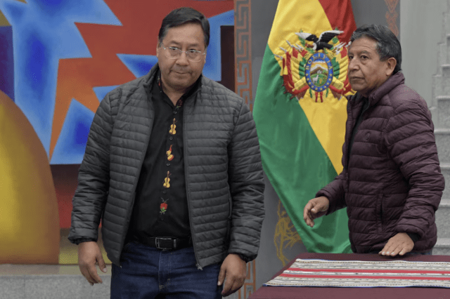 ▲2024年6月26日,玻利維亞政府大樓內,玻利維亞總統路易斯·阿爾塞(左)譴責這次政變事件。路透社