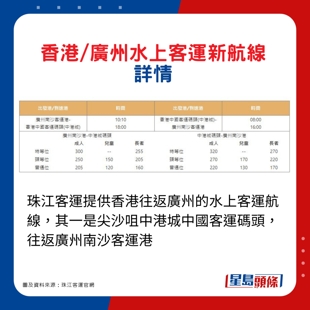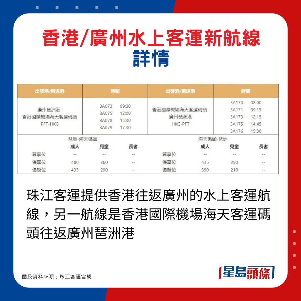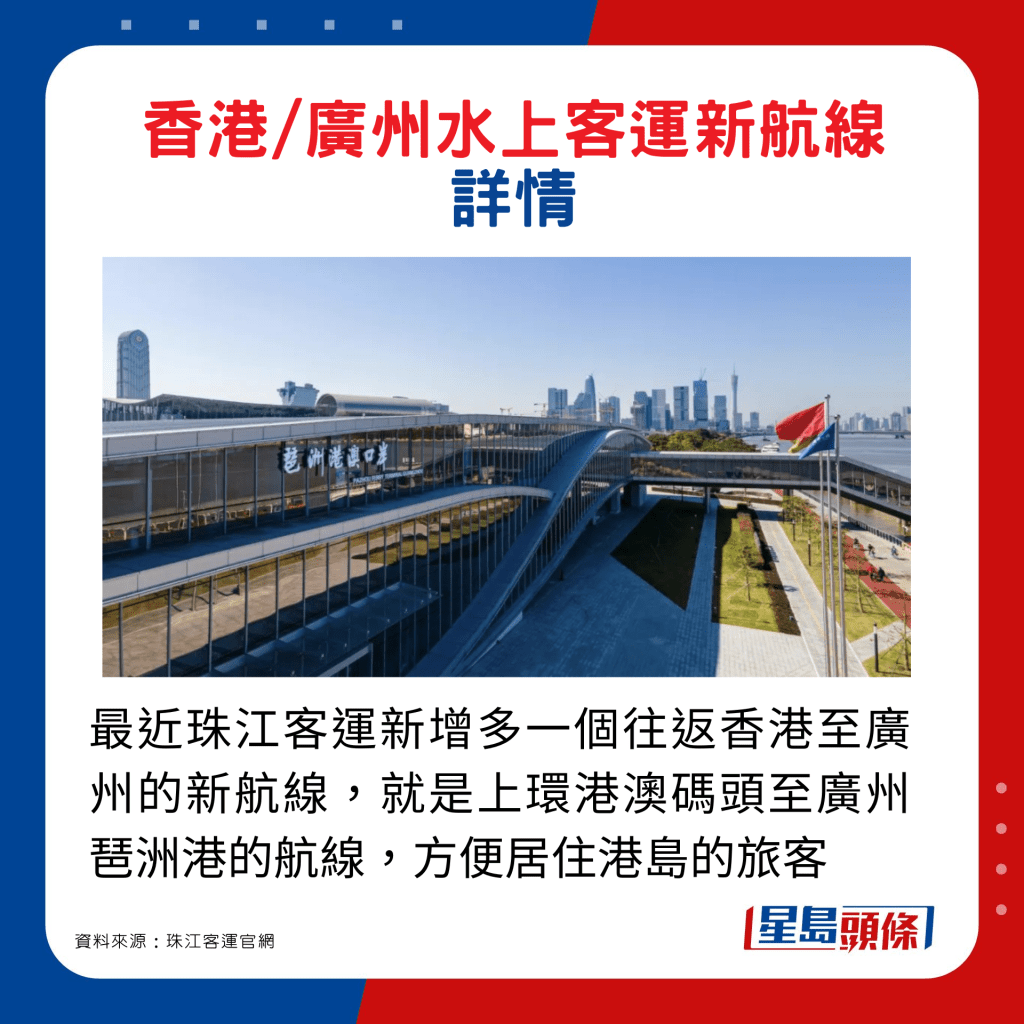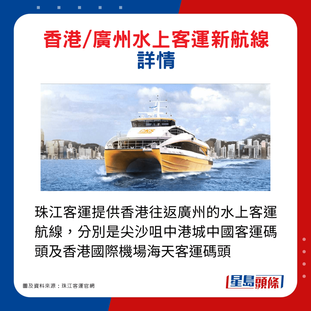 ▲珠江客運提供香港往返廣州的水上客運航線,另一航線是香港國際機場海天客運碼頭往返廣州琶洲港