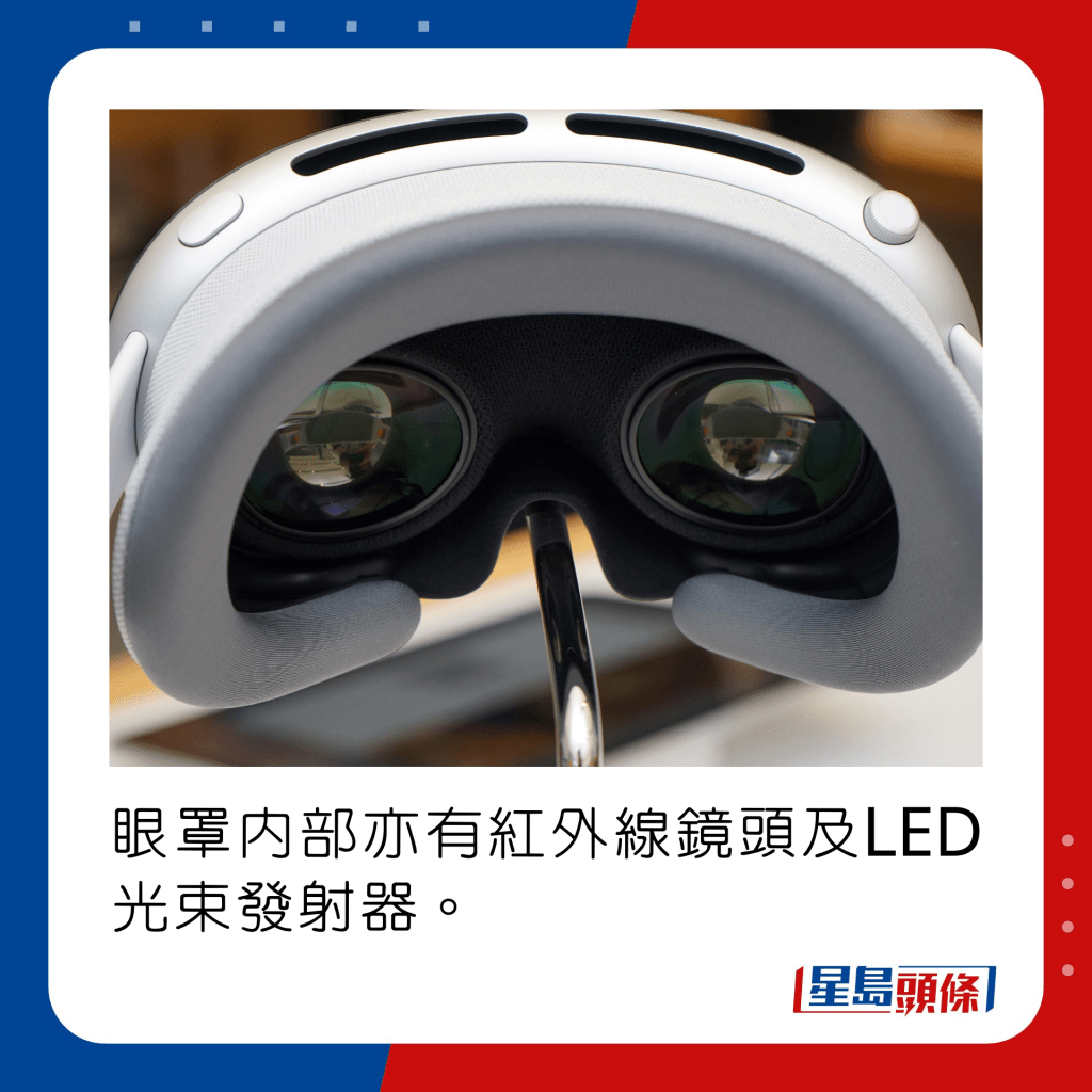眼罩內部亦有紅外線鏡頭及LED光束發射器。