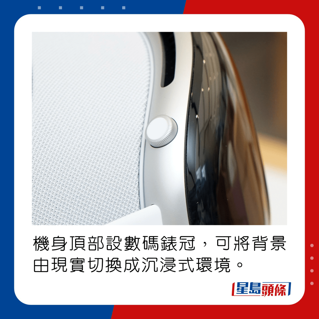 機身頂部設數碼表冠,可將背景由現實切換成沉浸式環境。