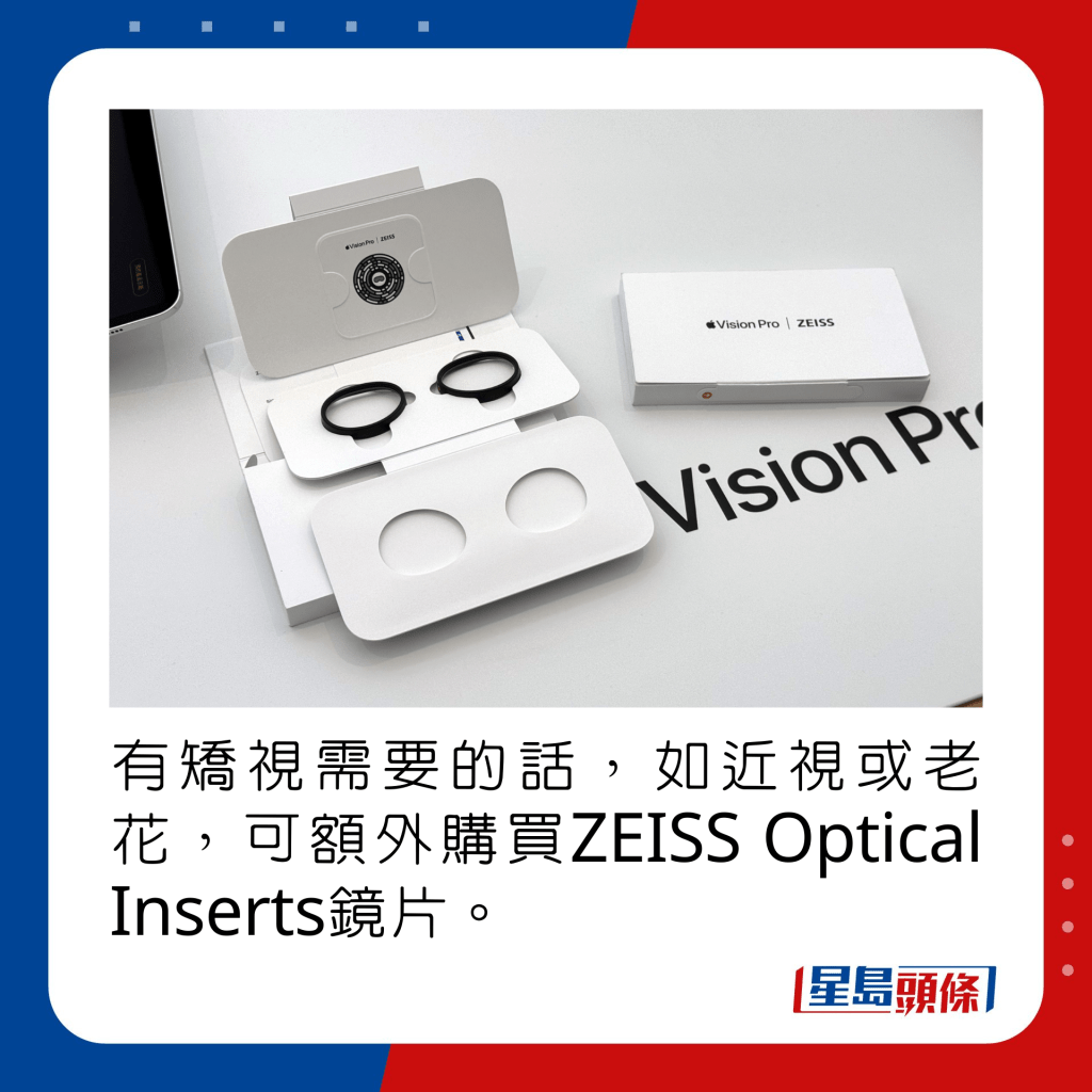 有矯視需要的話,如近視或老花,可額外購買ZEISS Optical Inserts鏡片。