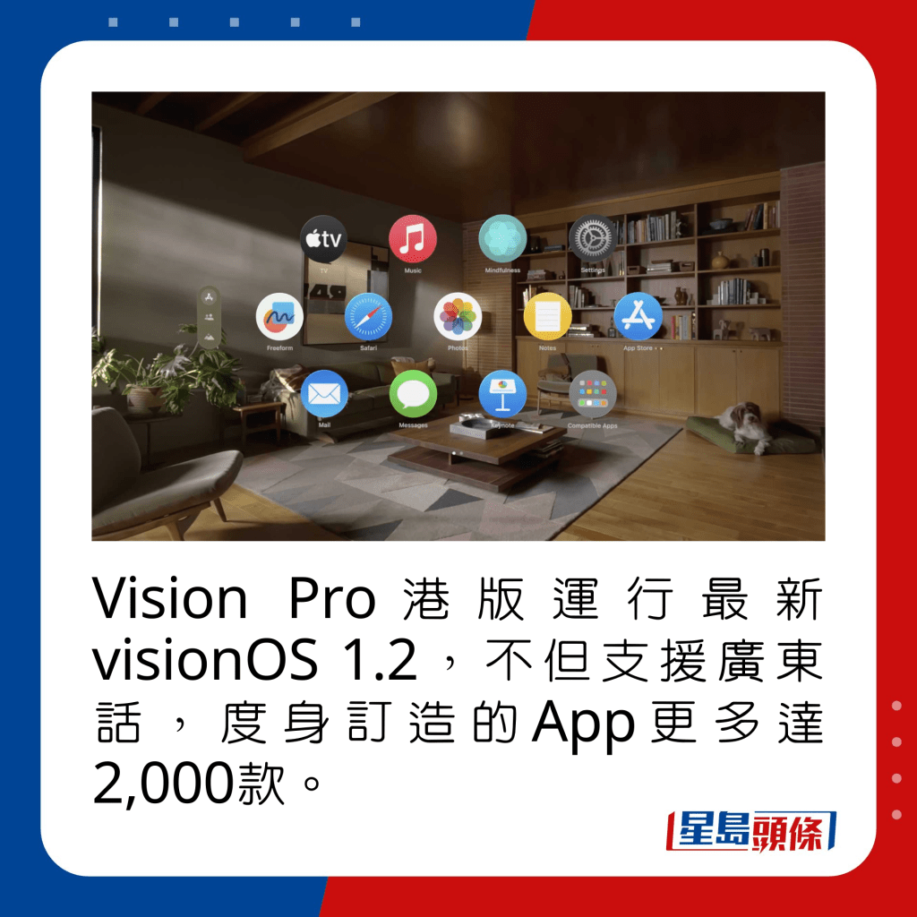 ▲Vision Pro港版運行最新visionOS 1.2,不但支持廣東話,度身訂造的App更多