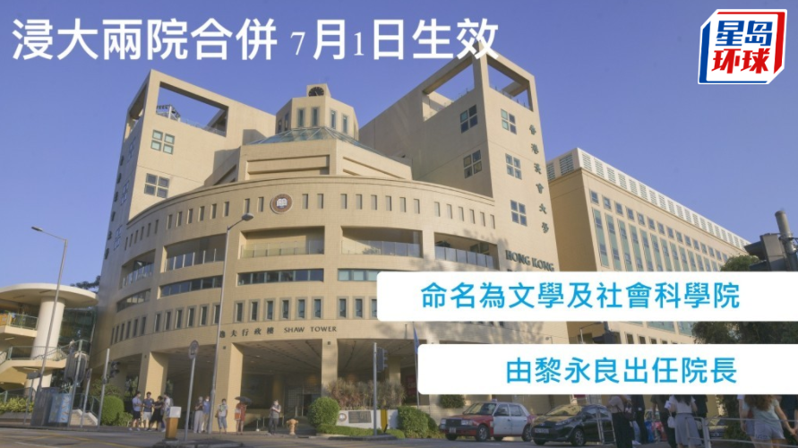 浸會大學自去年提出文社兩院合并方案后,遭學生及校友等質疑校方咨詢不足,引發反彈,合并方案最終在今年3月中獲校董會通過,將于7月1日、即下周一生效。浸大昨回覆《星島》查詢時表示,合并后的新學院將命名為“文學及社會科學院”,由現任社會科學院院長兼文學院署理院長黎永良出任院長。至于早前參與兩院合并關注組的學生被指違反紀律守則,記者問及調查結果時,浸大指將根據紀律程序跟進,惟因牽涉學生私隱,故不會評論。