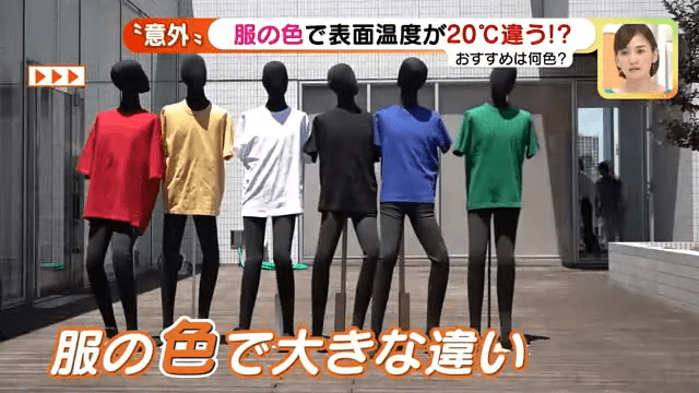 日本節目《メ~テレニュース》為6種顏色Tee進行測試