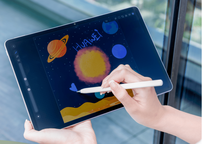 過去很多會用平板畫畫的用家,為追求如在紙張下筆的效果,特地在螢幕貼上類紙膜或畫畫膜,而HUAWEI MatePad 11.5”S所用的新一代PaperMatte柔光屏,直接帶來紙張質感,以手觸摸會發現螢幕表面有一層細緻紋理,配合買機時送贈的第3代M-Pencil,落筆能感受猶如真筆在紙張上摩擦的微微阻力,有別傳統在光滑玻璃上滑動。