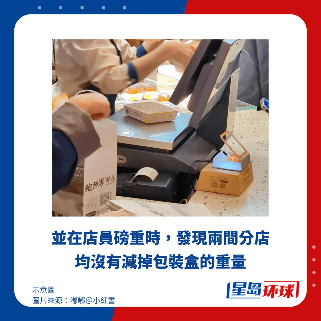 并在店員磅重時,發現兩間分店均沒有減掉包裝盒的重量