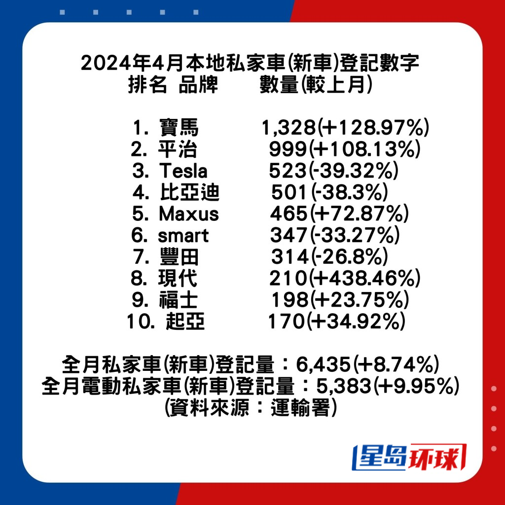 4月香港私家車同比交投升124.76%|寶馬取代特斯拉登榜首,電動車市占率83.65%再創新高