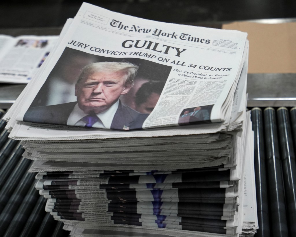 ▲雖然特朗普在掩口費案被裁定罪成,受到傳媒廣泛報道,但民調顯示67%選民不受影響。路透社