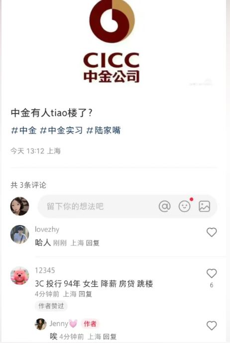 7月3日,“中金”兩字突然沖上微博熱搜,網傳中金公司(中國國際金融)一員工因公司降薪,導致房貸壓力過大而跳樓。