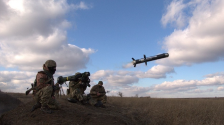 ▲2021年12月22日,烏克蘭軍人在頓涅茨克附近訓練期間發射 FGM-148“標槍”反坦克導彈 圖源:RT報道配圖