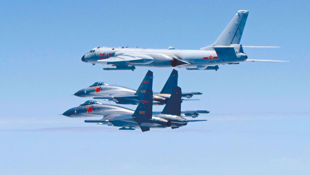 ▲42解放軍機艦24小時不斷電“三面圍臺” 。(新華社)