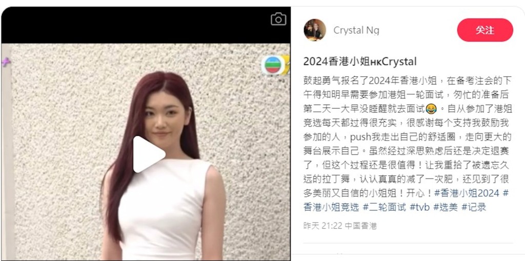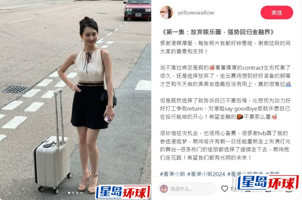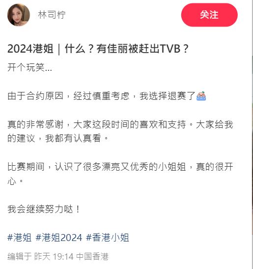 ▲任職金融的林司檸日前在小紅書發文:“由于合約原因,經過慎重考慮,我選擇退賽了?!?/strong>