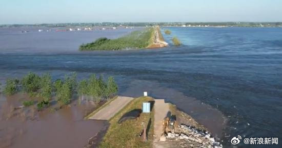▲決堤口今日下午水流開始緩和。微博@新浪新聞