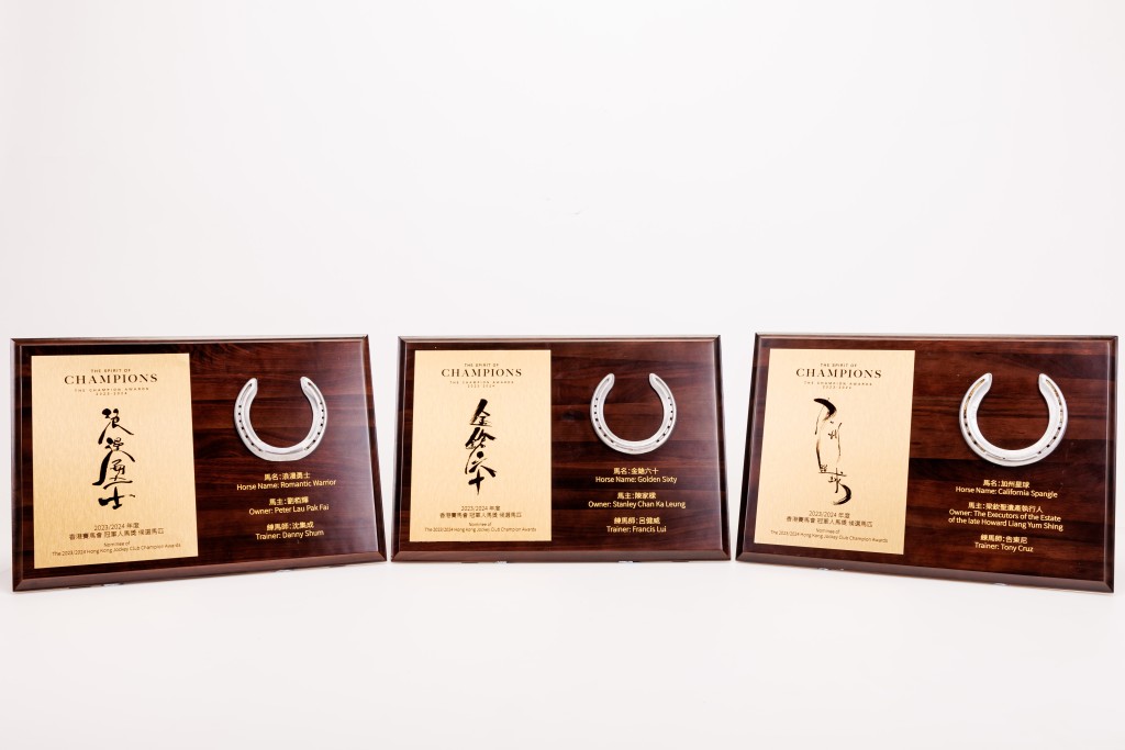 由香港賽馬會舉辦的年度盛事“冠軍人馬獎”即將舉行,本年以“冠軍精神”(The Spirit of Champions)為主題,而為了彰顯冠軍人馬的尊貴身份,香港賽馬會特別邀請著名跨界藝術家馬興文(Simon Ma)為各候選馬匹之馬主呈獻獨一無二、精心設計的專屬紀念品,將候選名駒的名字以揮灑自如的水墨書法呈現,配以陪伴馬匹出戰無數賽事的馬蹄鐵,并注明候選馬匹的資料,深具紀念及收藏價值。
