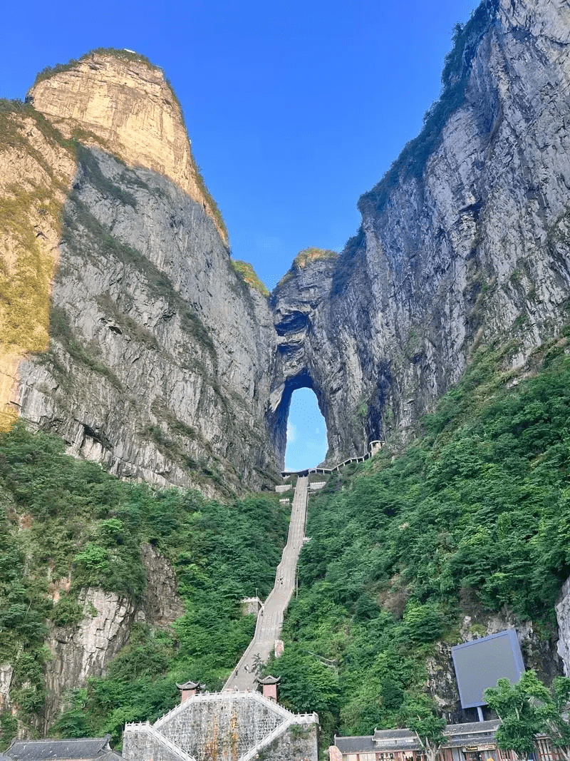 提到張家界的自然奇觀,天門山必定位居一二!天門山國家森林公園因擁有世界海拔最高的天然穿山溶洞“天門洞”而得名“湘西第一神山”,要登上天門洞,必先要走上共999級的天梯,亦可乘長達897米的電梯上下山。