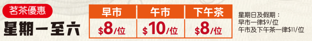 · 優惠時間如下: 星期一至星期六早上7時至早上11時 | 星期日及假期早上7時至早上10時
