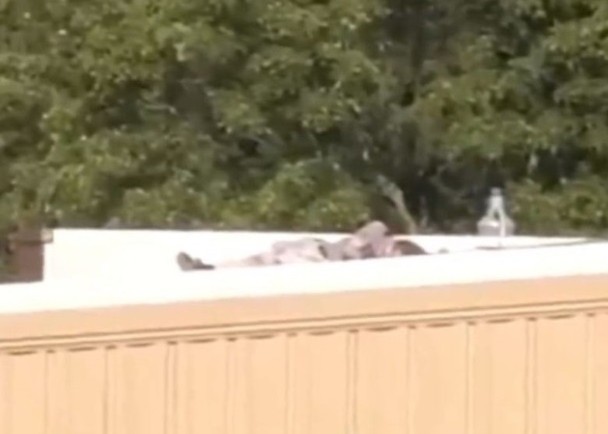 有兩段疑似槍手躺倒在屋頂的影片在國外社交媒體上傳播。經《紐約時報》證實,這兩段視頻顯示,涉嫌向特朗普開槍的人一動不動地躺在距離特朗普講話舞臺以北約400英尺(約122米)的一座小樓的屋頂上。