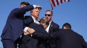 美國前總統特朗普星期六在搖擺州賓夕法尼亞州出席競選集會時遭槍擊,右耳受傷。槍手當場被擊斃,另有一人死亡、兩人受傷。這起事件預料將加劇美國社會的撕裂與政治緊張局勢,而特朗普臉上帶血,但毫無懼色的畫面很可能為他拉抬支持率。
