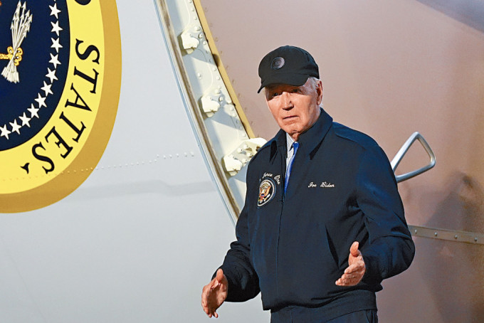 ▲確診新冠的拜登周三乘空軍一號專機抵達特拉華州的多佛空軍基地。