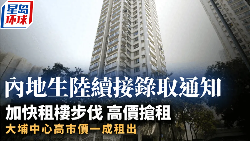 內地生加快租樓步伐高價搶租,大埔中心高市價一成租出