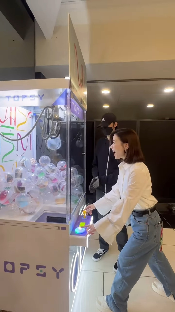 ▲佘詩曼成功夾到波波后,個樣超興奮。