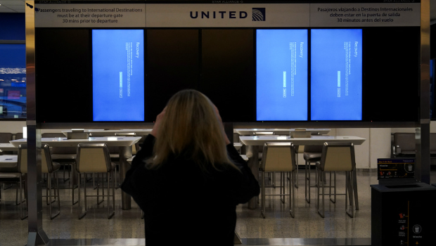 ▲2024年7月19日,美國紐瓦克國際機場 C 航廈一名旅客用手機拍攝了顯示Windows藍屏的畫面, Crowdstrike 的“Falcon Sensor”軟件更新導致微軟Windows 系統崩潰。(路透社)