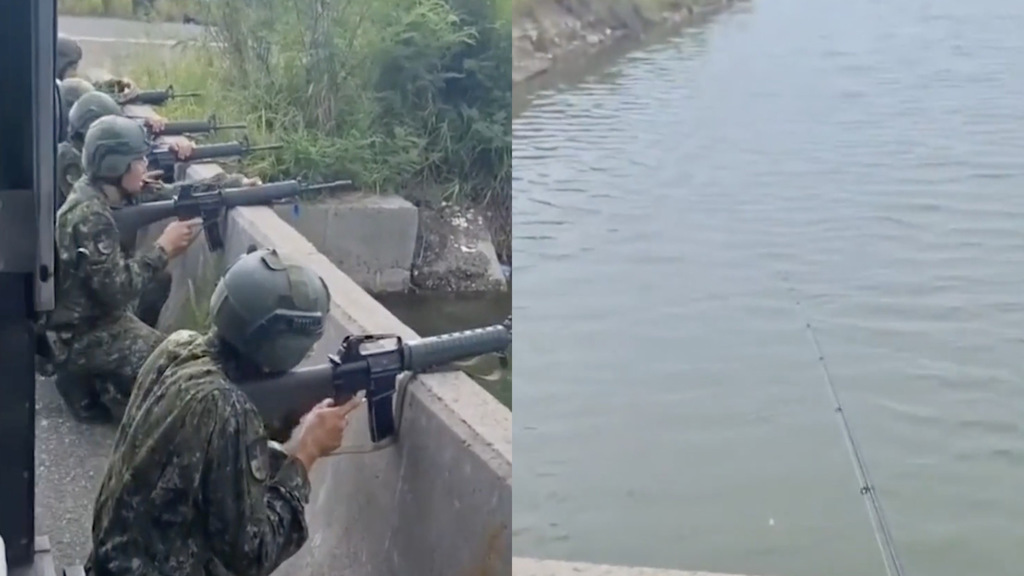 ▲20日在臺南卻傳出有民眾釣魚釣到一半,身旁卻突然被軍人包圍,事后才得知是“教召兵”們進行訓練課程。(圖/翻攝自社會事新聞影音)
