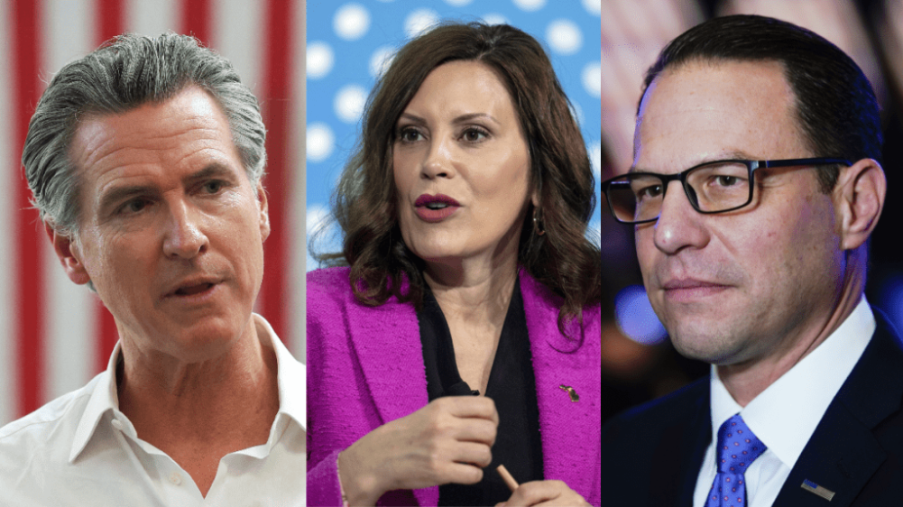 左起:加州州長紐森、密歇根州州長惠特默、賓州州長夏皮羅。 路透社,美聯社