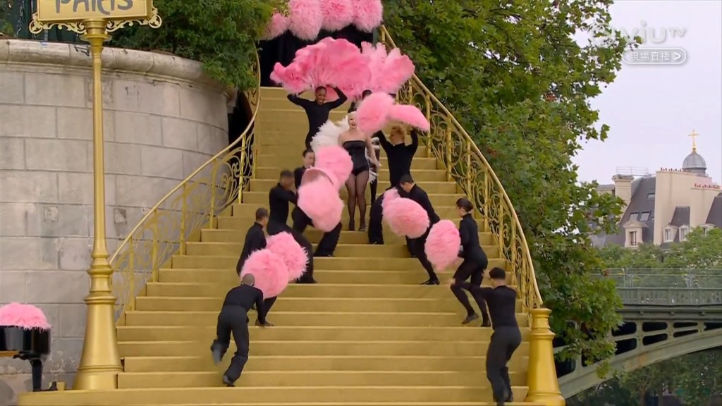 昨日(26日)較早前已有網民分享Lady Gaga在塞納河一帶彩排,而在開幕禮正式開始后不久,Lady Gaga終于打頭陣出場。在多國運動員出場后,Lady Gaga成為首位出場的表演藝人。Lady Gaga在塞納河邊勁歌熱舞演唱法文歌曲,她穿上全黑性感舞衣,以金發女郎造型亮相,帶動全場氣氛。