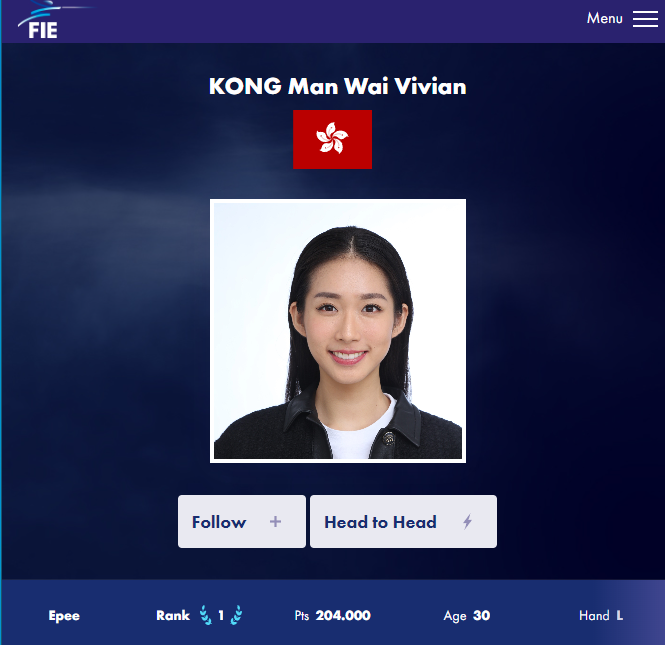 ▲江旻憓在國際擊劍總會排名世界第一,固有“世一”之稱。國際擊劍總會網頁。