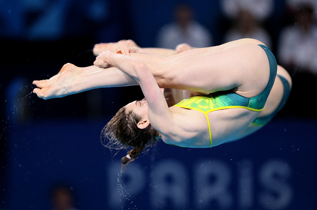 ▲為何跳水選手上岸后要馬上沖澡?這是為了保持肌肉溫暖及柔軟,以免抽筋。圖為澳洲跳水選手基妮(Maddison Keeney)27日出賽。(路透社)