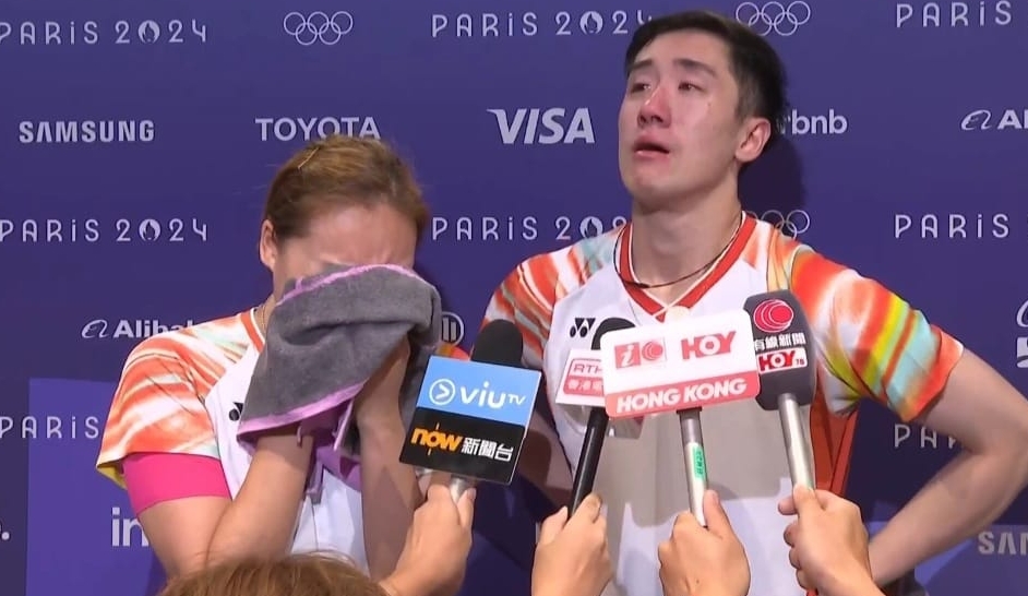 ▲鄧俊文及謝影雪賽后帶淚受訪。