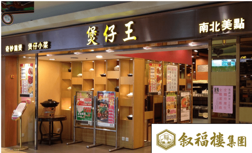 酒樓名稱“煲仔王”,為敘福樓集團旗下僅馀的一間中式菜館