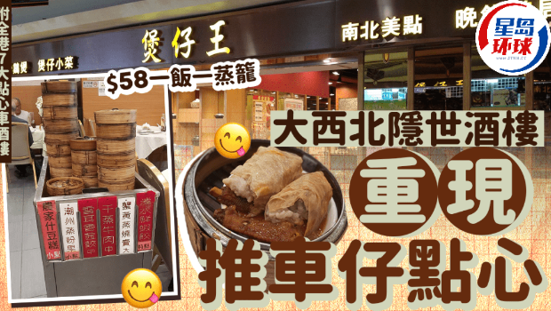 事緣,有網民在Facebook群組“香港茶餐廳及美食關注組”上發帖,分享他到訪天水圍天恩邨的“煲仔王”酒樓時,發現店內竟有近年非常少見的點心車,“一飯一點心$58”。從帖中照片可見,點心選擇約有十數款,除了蟹皇燒賣、潮州蒸粉果、蠔皇鮮竹卷等常見點心外,亦有干蒸牛肉、雜豆糕等懷舊之選。