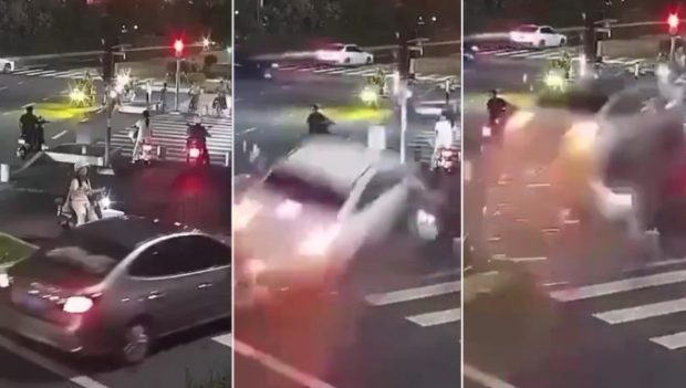 據悉,事發間為當晚8時40分許,一輛白色汽車無減速情況下沖紅燈,撞上了電動車,騎車人被撞飛跌倒路邊。汽車最后撞到了綠化帶上才停車,有人躺在地上一動不動,車內乘客大叫求救。影片所見,一名駕電動電單車的女子原在路邊等候過馬路,瞬間被肇事車輛撞倒,情景非常駭人。