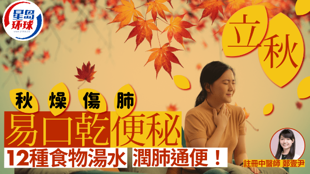 立秋節氣2024/二十四節氣/養生/禁忌/潤肺湯水|8月7日(星期三)是二十四節氣的“立秋”。注冊中醫師鄭壹尹接受《星島》訪問講解立秋養生飲食宜忌,指出立秋后仍炎熱有暑氣,但同時亦要小心秋燥傷肺,容易出現口干、皮膚干燥、便秘等問題。她推介12款滋潤湯水及食物,有助潤肺生津通便。
