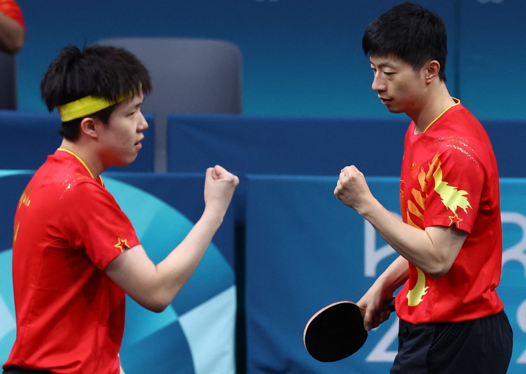 王楚欽伙拍馬龍打第1場雙打,與瑞典的卡爾貝格、卡臣組合激戰5局險勝。路透社