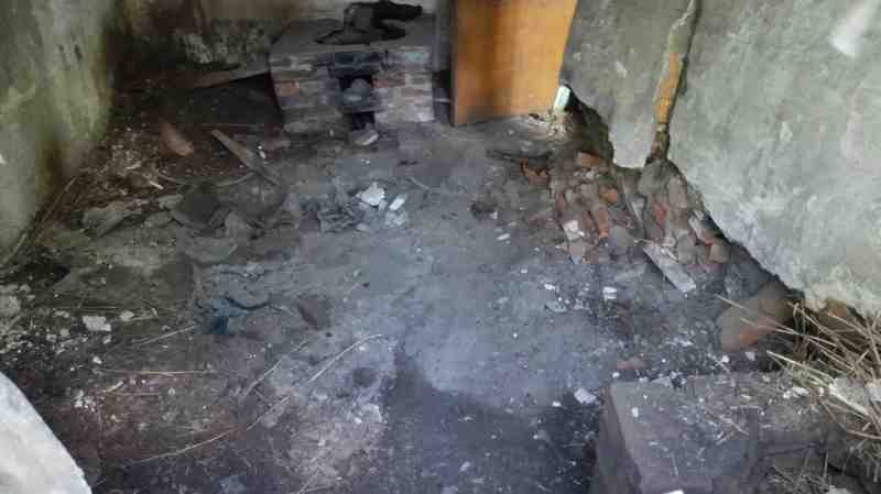 兇宅的廚房,地面還保留著25年前被挖掘過的樣子。