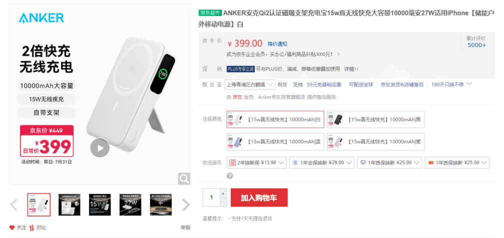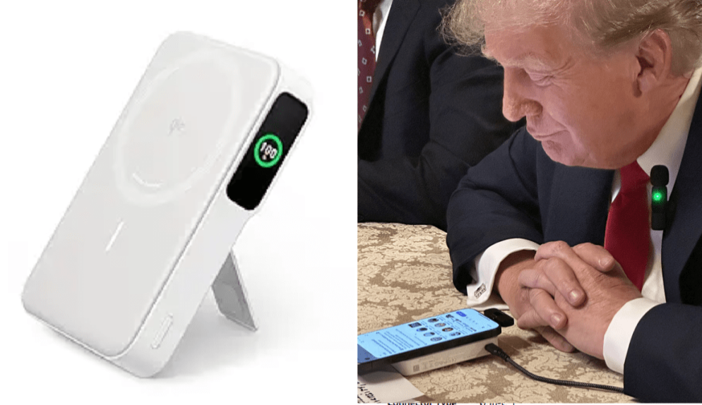 有內媒經查詢后發現,一款“ANKER安克Qi2認證磁吸支架充電寶”與特朗普所使用的充電池外型特徵吻合。該產品于京東網站上售價約400元人民幣。而美國的電商平臺亞馬遜上,這款產品目前的售價是89.99美元。
