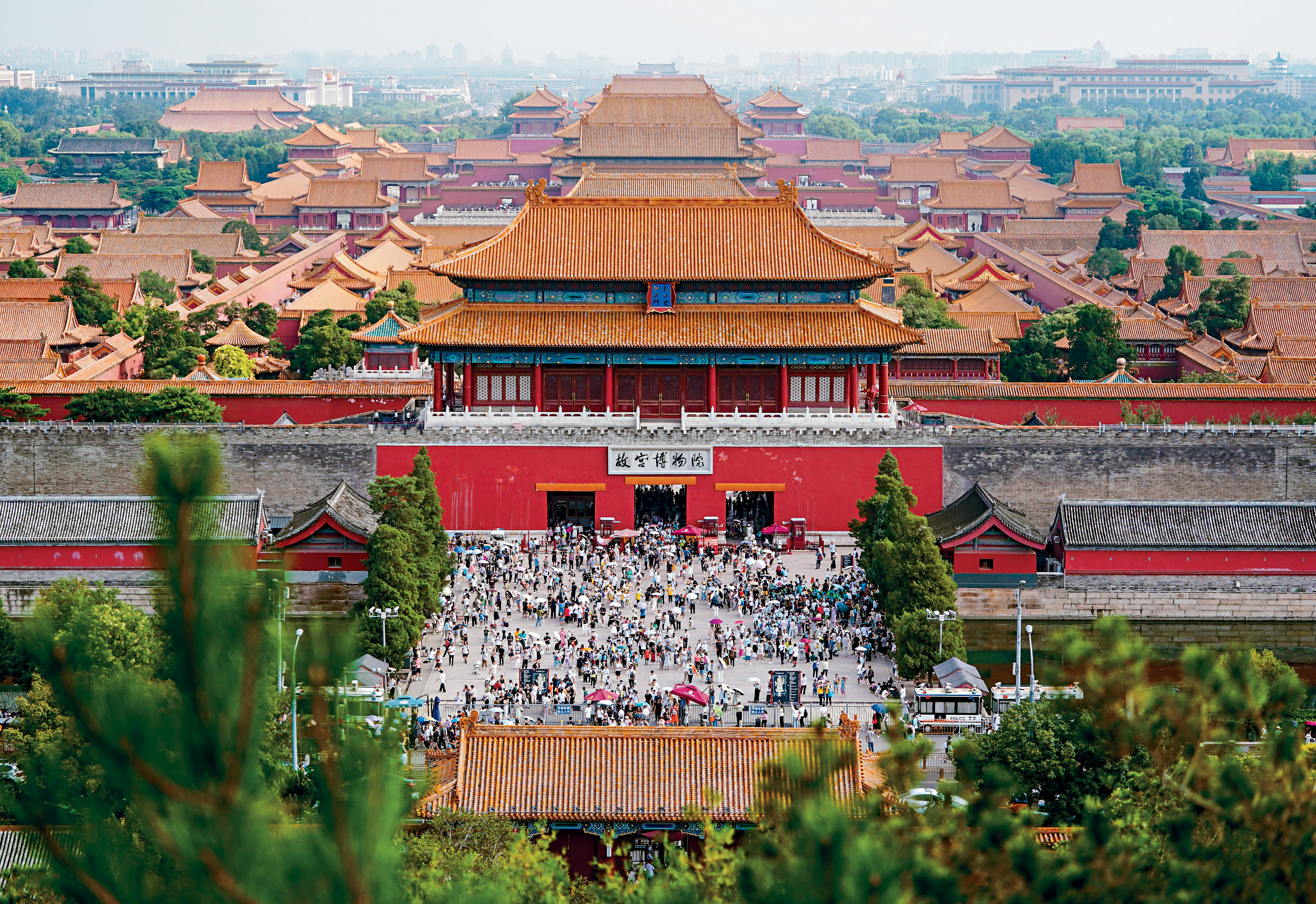 ▲從景山最高處的萬春亭向北眺望,可看到北京中軸線上氣勢恢宏的鐘鼓樓。
