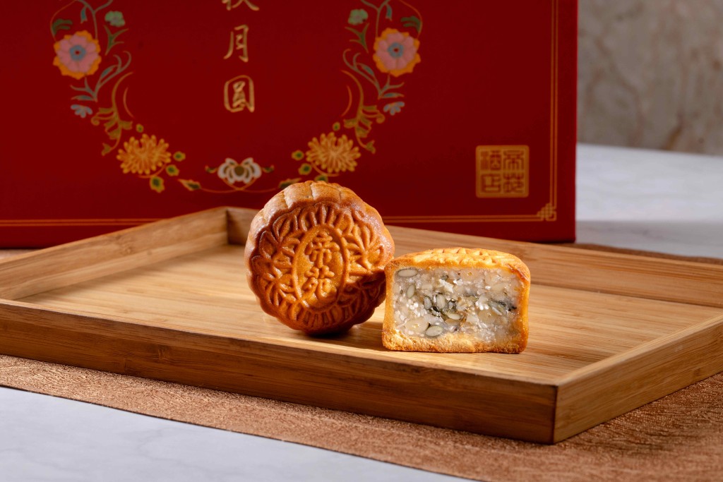3.麥芽糖高纖果仁月餅,精挑優質雜錦果仁及麥芽糖,味道天然無添加,高纖健康又飽肚。($348 帝苑酒店)