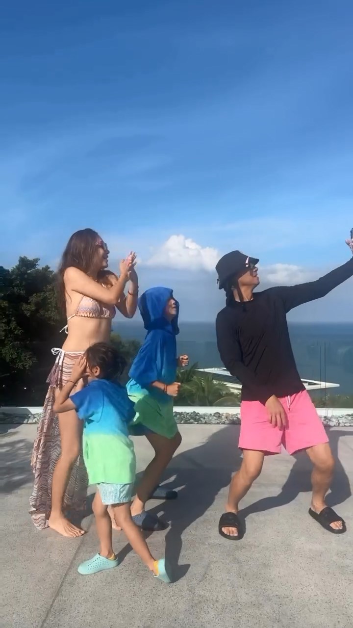 應采兒上載最新的影片,與陳小春三父子跳舞。