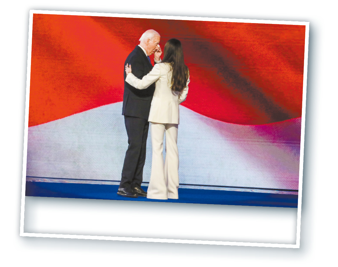 ▲拜登在女兒陪同下上臺發表演說時,聽到臺下觀眾熱烈掌聲歡呼聲不禁感動抹淚。 Yalonda M. James/三藩市紀事報/美聯社