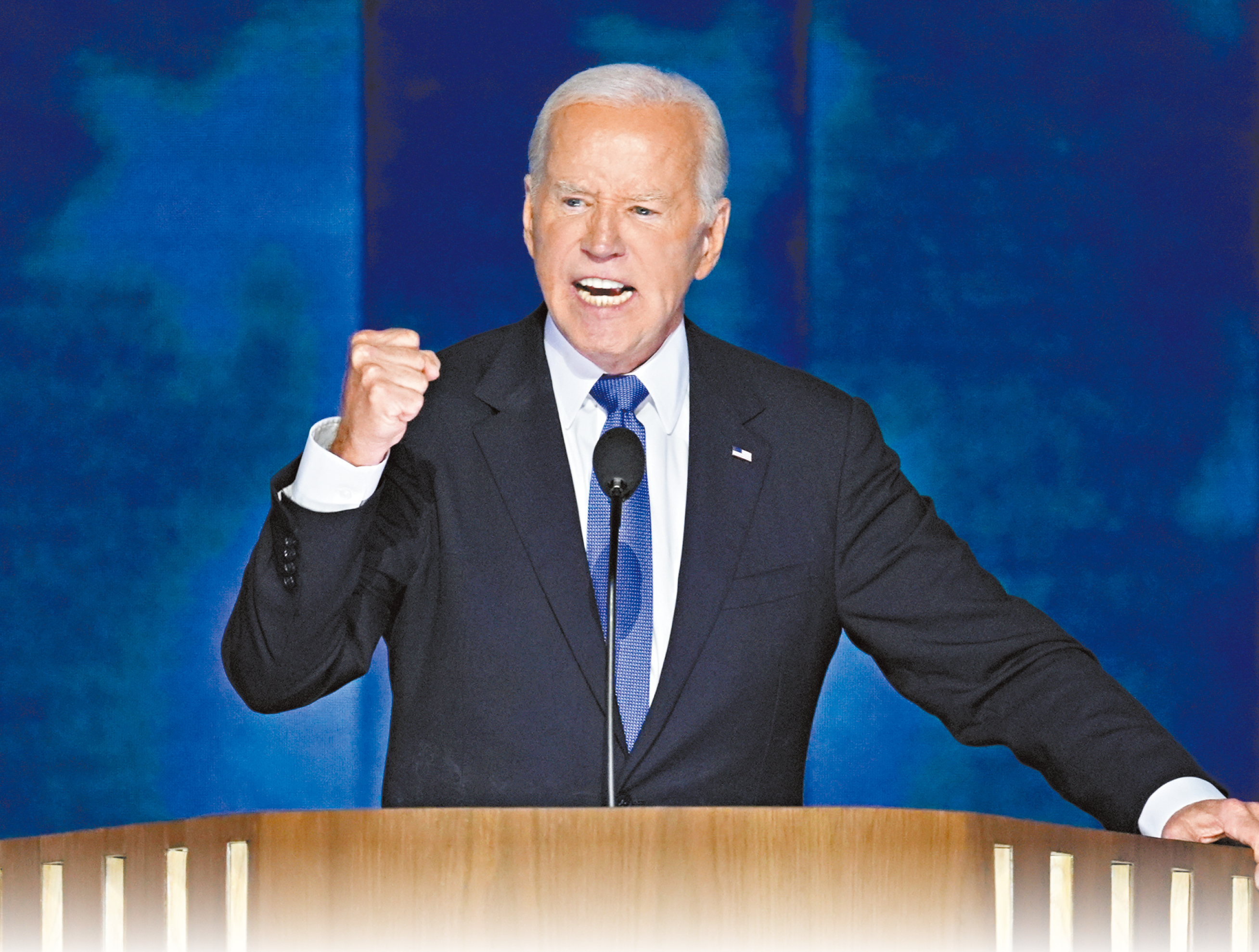 ▲總統拜登在民主黨全代會上激情演說。 美聯社