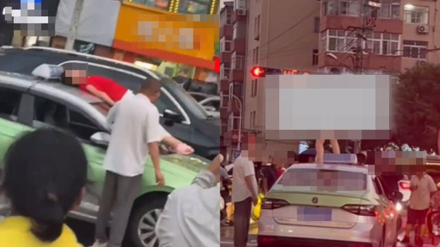 與出租車司機發生糾紛!青島一女子竟爬車頂脫光衣服“全裸熱舞”