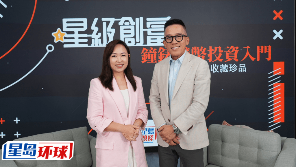 ▲港九押業商會理事孔慶森接受《星級創富》訪問,與主持林小珍對談鐘表投資入門。