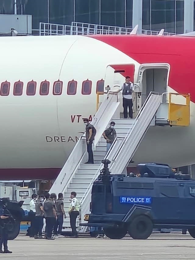 另外,根據Facebook群組“香港機場實況討論區”網上圖片,大批香港警員今日上午在一架印度航空客機外戒備。警員們穿防彈背心及荷槍實彈,同時亦有數部裝甲車在場,氣氛緊張。警方回覆查詢時證實,香港警務處和印度相關當局于今日(8月22日)完成了一宗逃犯移交行動。
