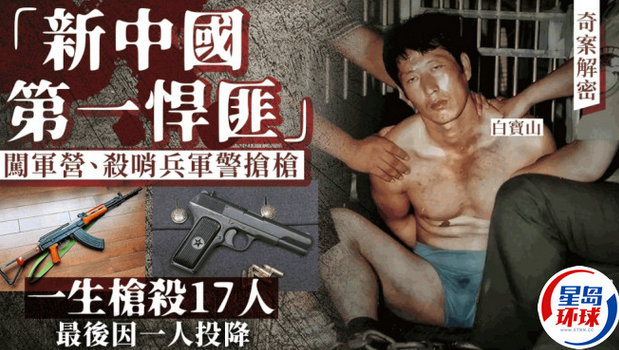 內地槍枝管制極嚴,罕有聽聞有罪犯持槍作案。28年前,有“建國第一悍匪”之稱的白寶山在一年多之間,先后殺害17人,當中包括5名軍警,目的除是仇恨軍警外,更主要是為搶奪他們的配槍,以實施搶劫“大茶飯”。犯下滔天罪惡的白寶山,在警方全國追捕下,終在新疆被捕。窮兇極惡的白寶山在末路時放棄開槍頑抗,制造更大傷亡,全因不想在母親面前殺人。白寶山犯罪事件后來被拍成電視連續劇《末路1997》或名《中國刑偵一號案》